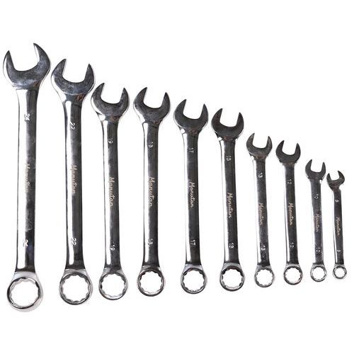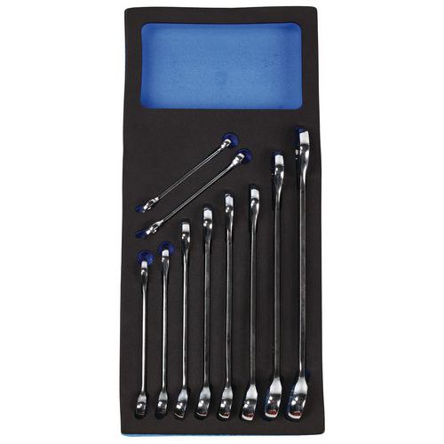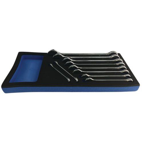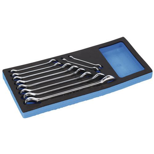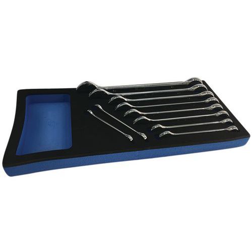 | Varenavn | 1/3-modul med 10 ring-gaffelnøgler , Antal dele: 10, Kapacitet - dimensioner: 8, 10, 12, 13, 16, 17, 18, 19 |