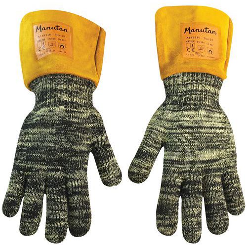 | Varenavn | 100 °C varmebestandige handsker , Tekstil: Læder, Handskestørrelse: 10, Farve: Sort, Model: Avec manchette |