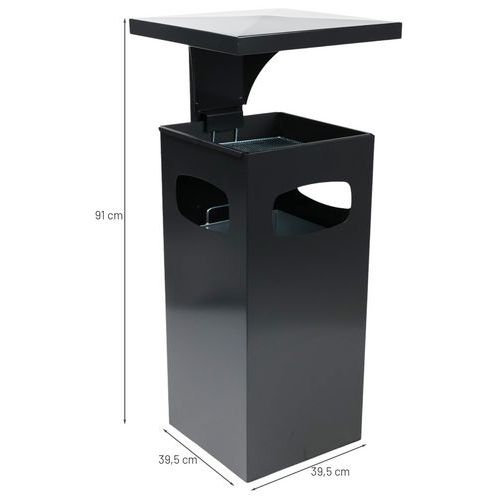 Askebæger og skraldespand med udtageligt forstærket låg og 3 åbninger. Aftagelig indvendig metalbeholder. Med sort askebæger og forkromet net. Nemt at bruge.