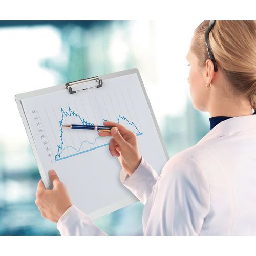 | Varenavn | A3-udklipsholder i aluminium, Materiale: Aluminium, Farve: Grå, Bredde: 45 cm, Højde: 32.7 cm |