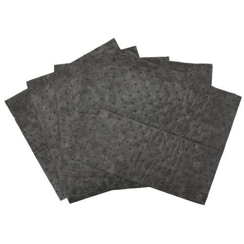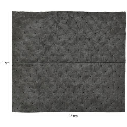 Ikasorb Universal Standard Medium-absorbent med høj slidstyrke og middelhurtig absorption. Perfekt til alle typer væsker såsom olie, vand, opløsningsmidler, kemikalier og skærevæsker. SM/SMS-teknologi – spunnet overfladelag (én side på SM, to sider på SMS) for maksimal slidstyrke og fnugfrihed. Forstærket overside (SM) og både over- og underside (SMS) gør den velegnet til at stå, gå og køre på. Varmepræget for at holde lagene sammen og forhindre, at absorbenten går i stykker. 100 % fri for silikone.