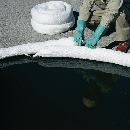 Lænse flyder på vand og er vandafvisende. Absorberer alle kulbrinter og olier på vand og jord samt ved regn. Ekstra slidstærkt yderhylster. Metalkroge gør det muligt at fastgøre lænserne til hinanden og dermed skabe en afspærring. Lænserne er udstyret med et reb, der gør det nemt at trække og samle dem. Tåler UV-stråling og fortsætter med at flyde på vandoverfladen, selv når den er fyldt. Lænserne forhindrer spredning af lækagen og har stor sugeevne.