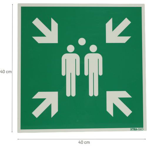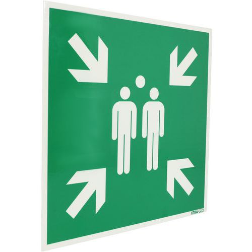 | Varenavn | Advarselsskilt Samlingsplads, Selvklæbende: nej, Hård: ja, Skilt, form: Firkant, Type skilt: Nødudgang |
