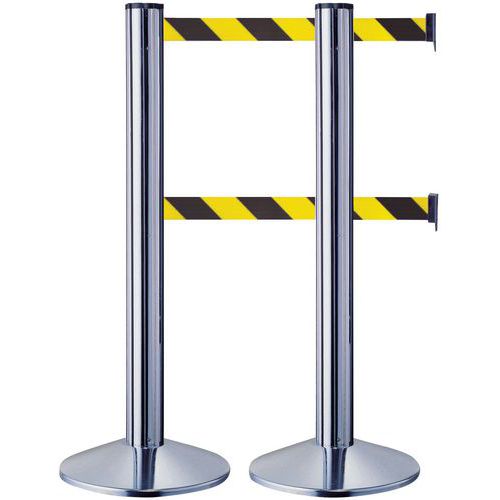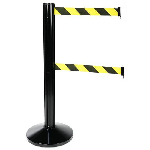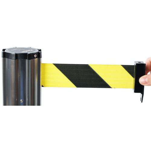- Afspærringsstolpe med to indtrækkelige bånd, hver med tre fastgørelsespunkter.