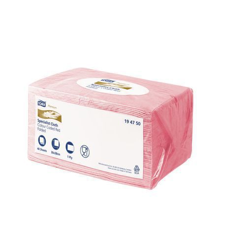 - Allroundklud Tork W8 Premium er en holdbar og absorberende rengøringsklud, der kan bruges mange gange uden at blive slidt. Fås i fire forskellige farver, som hjælper med at adskille opgaver, hvilket forebygger overførsel af bakterier.
