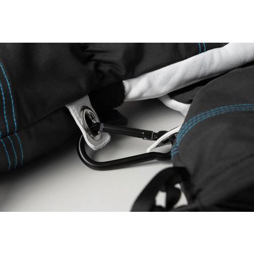 - Velcrolukning og elastik omkring håndleddet giver en stabil og behagelig pasform, mens manchetten med snefang og karabinhagen øger funktionaliteten.
