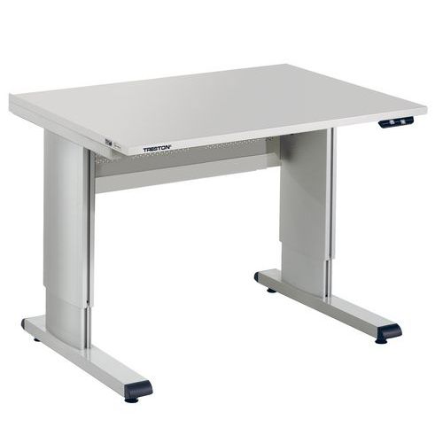 Treston WB arbejdsbord er særligt velegnet til elektronikindustrien og som værkstedsbænk. Bordpladen kan justeres trinløst, enten elektrisk eller med håndsving eller unbrakonøgle. Takket være moduler til placering over arbejdsbordet og en bred vifte af tilbehør og ekstra produkter er det nemt at skabe en yderst ergonomisk arbejdsplads. Arbejdsbordene i denne produktfamilie kan nemt placeres side om side, ryg mod ryg eller mod en væg i forskellige formationer. Trinløs højdejustering af bordplade 700–1100 mm Aluminiumsprofil med høj finish appellerer til øjet. Laminat bordplade. Velegnet til renrum med ISO klasse 7 Vi har også side- og hjørnemoduler til udvidelse Max belastning 300 kg Fås også med ESD-beskyttelse Kan nemt placeres ryg mod ryg, side om side eller i et hjørne.