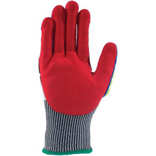- Semi-nitril belægning på håndfladen med sandblæst finish for forbedret greb.