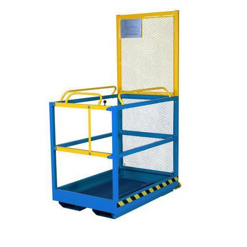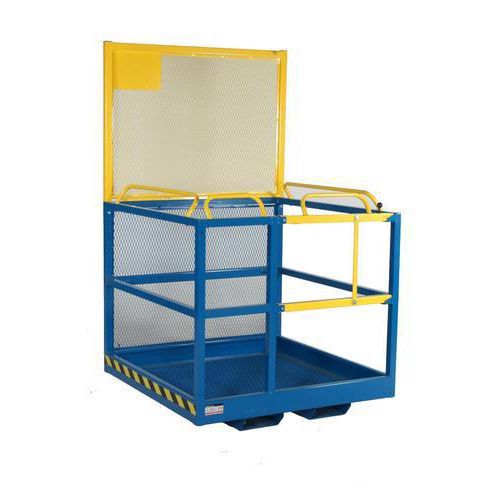 Til sikre personløft. Forsynet med skridsikkert gulv, dobbelte sikkerhedskæder til låsestifter samt fjedrende dobbeltvirkende lås i lågen. Kurvene opfylder de fleste krav, som Svensk standard har opstillet i henhold til SS 3628. Vi anbefaler en førstegangsbesigtigelse af kurv og truck af et akkrediteret organ i henhold til AFS 1993:1. Pulverlakeret. BEMÆRK! I Danmark skal kurven forsynes med en sikkerhedsstrømafbryder før besigtigelse. CE-mærket.
