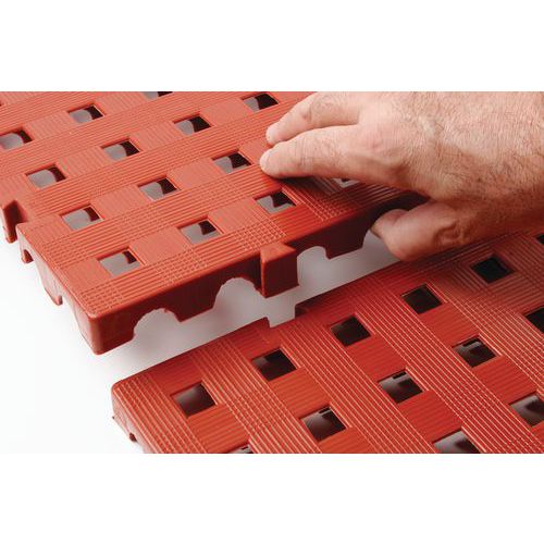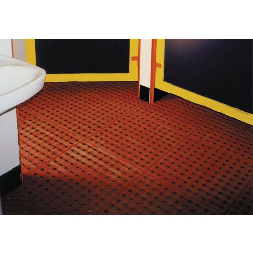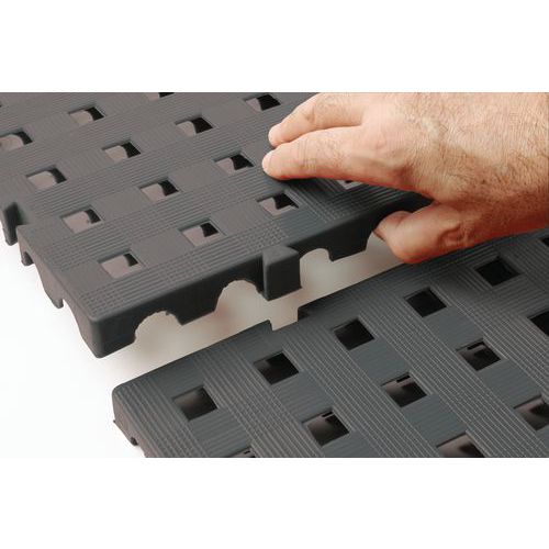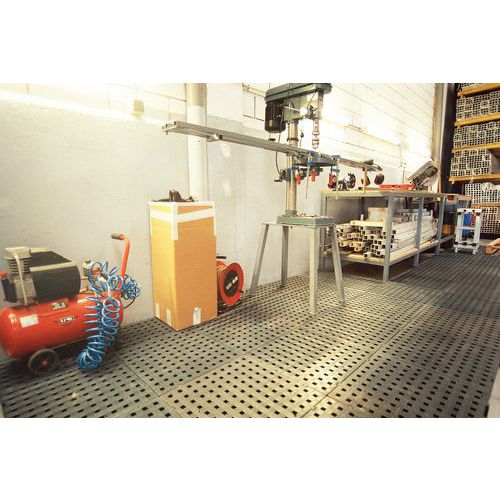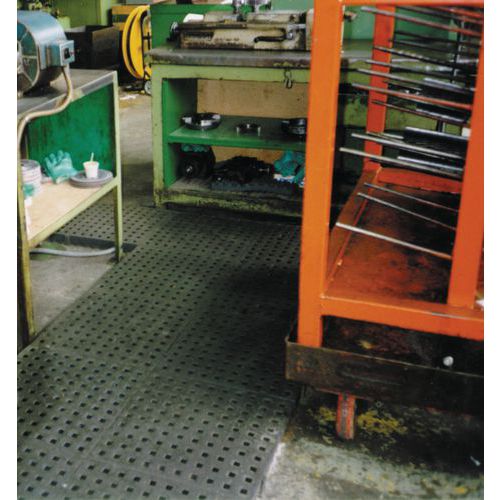 Slidstærk og isolerende gulvmåtte med huller og tyk struktur til miljøer med fedtede gulve.