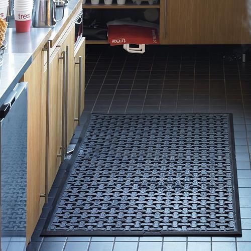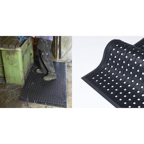 Det kraftige mønster gør den meget skridsikker, og den åbne profil gør, at væske kan trænge igennem og ledes bort, og at gulvet ventileres. Den er fremstillet af 100 % nitrilgummi, hvilket gør den meget modstandsdygtig over for olie og fedt.