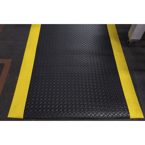 Aflastende arbejdsmåtte i PVC med riflet overflade, som giver ekstra skridsikring.