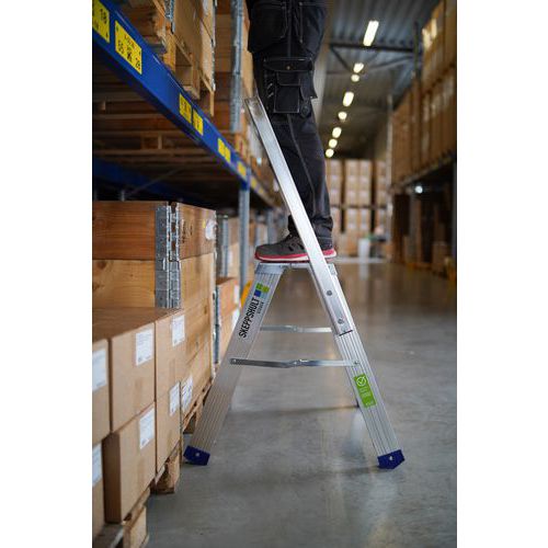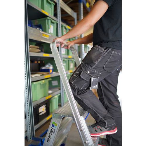 - Arbejdsskammel Professionell med sikkerhedsbøjle er fremstillet af aluminium og har stag og sakse af galvaniseret stål.