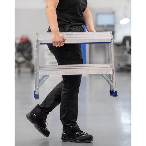 - Lavet til brug – kraftige skridsikringer og forstærkede trin sikrer, at bukken står stabilt på underlaget og forlænger dens levetid.