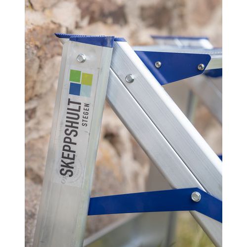 Arbetstrappa APO fra Skeppshultstegen – en sammenklappelig og stabil arbejdstige i aluminium, fremstillet i Sverige.