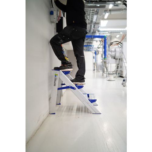 Stigen er fleksibel og kan bruges lige så godt ved maskiner, i butikken eller på lageret, som af håndværkere, der har brug for en robust og smidig stige.