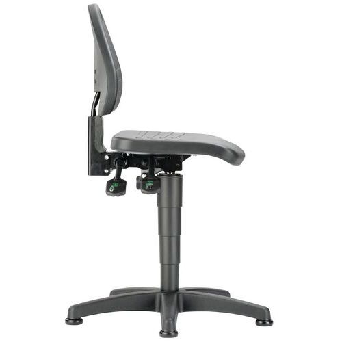 | Varenavn | Arbejdsstol Isitec lav, Type af fod: Glidefødder, Sæde, materiale: Polyuretan, Sæde model: Lav |
