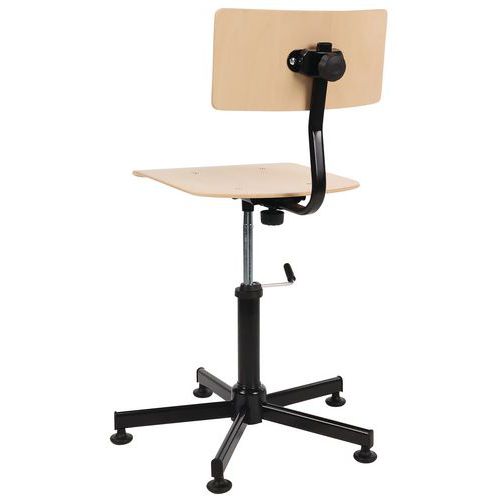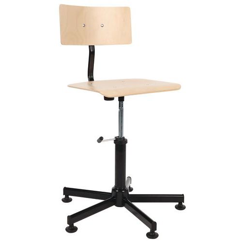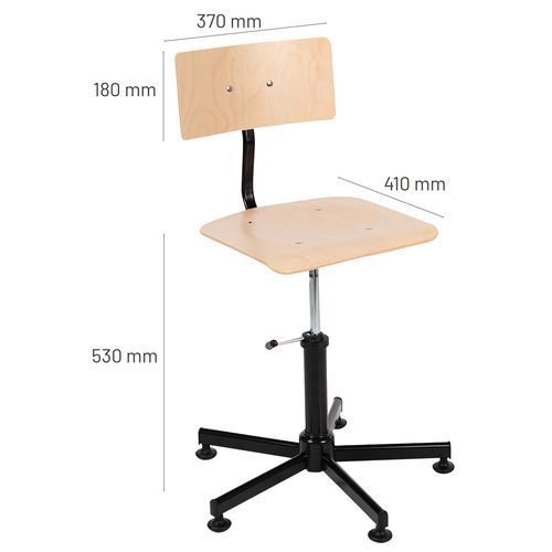 | Varenavn | Arbejdsstol træ, Armlæn: nej, Type af bund: 5 fod, Sæde, materiale: Krydsfiner, Ryglæn: ja, Fodring Ø: nej |