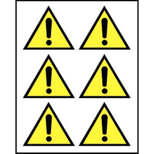 | Varenavn | Ark med skilte Generel fare, Selvklæbende: ja, Hård: nej, Skilt, form: Trekant, Type skilt: Fare |
