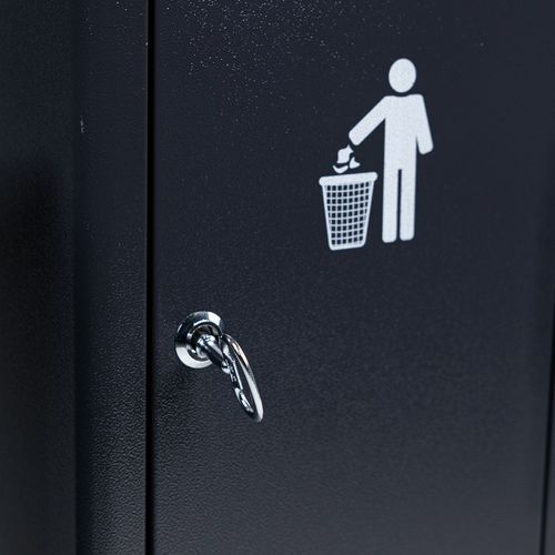 Askebæger/skraldespand med lås for ekstra sikkerhed. Glat overflade for nem rengøring. Anti-korrosions- og anti-UV-beskyttelse gør den ideel til udendørs brug. Indvendig beholder i galvaniseret stål. Opbevaringsskuffe fremstillet af galvaniseret stål med epoxybelægning. Alle Manutan-produkter er testet og godkendt af vores teams. Garanti : 10 år