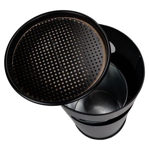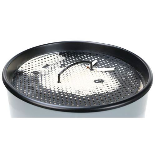 Rundt, brandsikkert askebæger/skraldespand med metalforing..Med en trådnettop og et sort panel..Net til nem skodning af cigaretter..Håndtag på toppen for nem tømning af affaldsspanden..Alle Manutan-produkter er testet og godkendt af vores teams. Garanti : 10 år