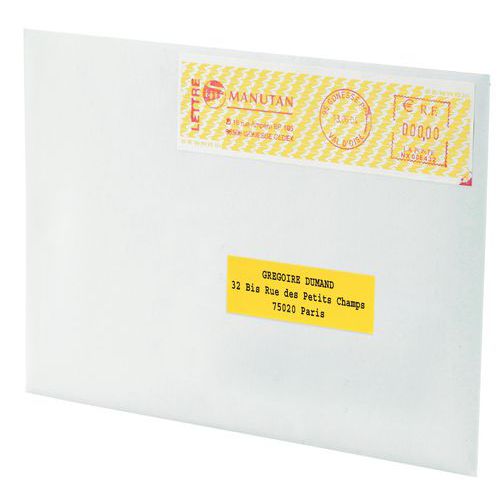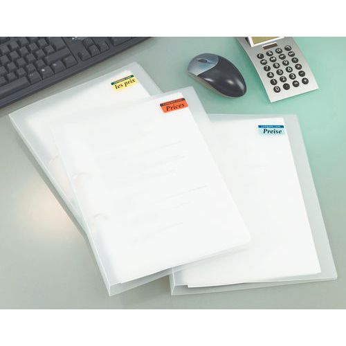 Forskåret farvet etiket til tydelig og hurtig identifikation. Aftagelig uden at efterlade rester. Klæber perfekt selv efter flere anvendelser. Kompatibel med alle laser- og inkjetprintere og kopimaskiner.