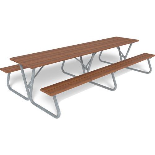 | Varenavn | Bænkebord Stål, Materiale: Fyr, Type af fastgørelse: Fritstående, Antal pladser: 8, Totallængde: 2910 mm |