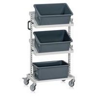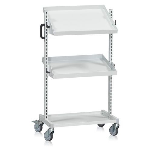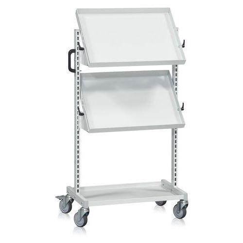 | Varenavn | Bakkevogn med 2 vipbare hyldeplan, Totalhøjde: 1250 mm, Totalbredde: 695 mm, Totallængde: 460 mm |