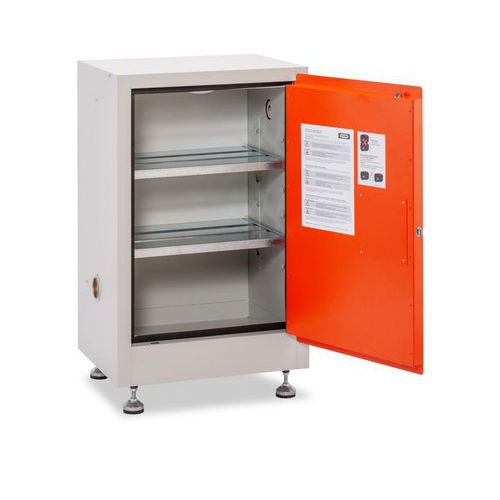 Skabet er udstyret med en låsbar dør med 3-punktslås, der kan låses med hængelås, samt ekstra dørtætninger og en ventilationsåbning til tilslutning til en udsugningsrør.