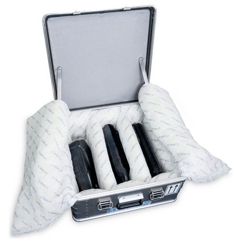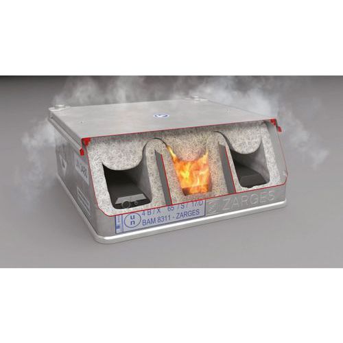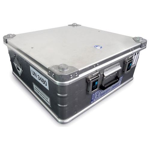 - Batterikasse i specialtilpasset aluminium på 67 liter til sikker transport og opbevaring af beskadigede eller defekte lithiumbatterier.