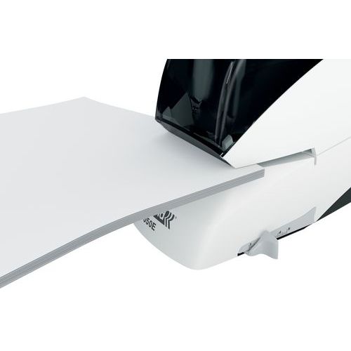 - Hæfter op til 50 ark (80 g/m²) med Flat Clinch-teknologi, der reducerer papirmængden.