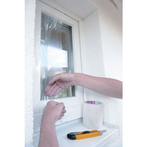 Overfladebeskyttelsesfolien er nem at bruge og beskytter overflader (f.eks. glas) mod malingsstænk, mange kemikalier, fugt, beskadigelse og tilsmudsning af enhver art.
