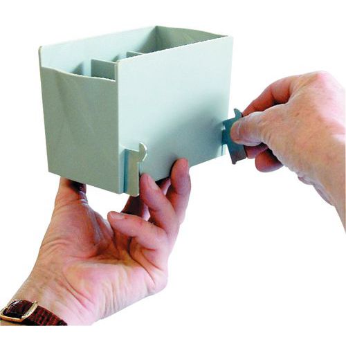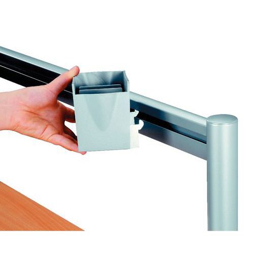 - Tilbehør til Skinne skrivebord Manade. Til fastgøring af tilbehør på opbevaringsstativ. Monteringsbeslagene fastgøres på tilbehøret.