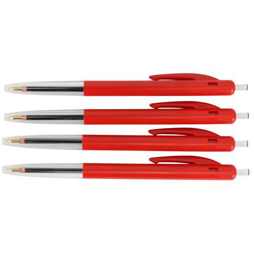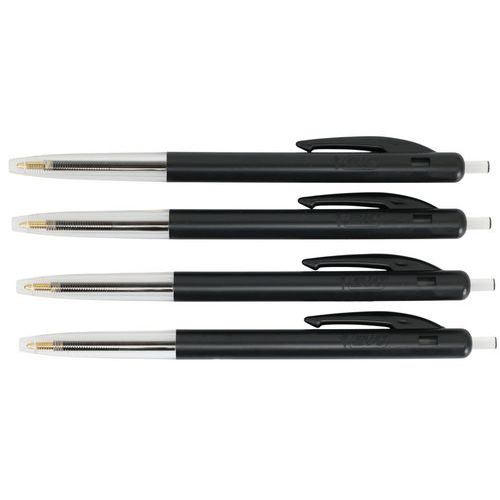 - Tilbagetrækkelig Bic-kuglepen med ikonisk design og sideknap.