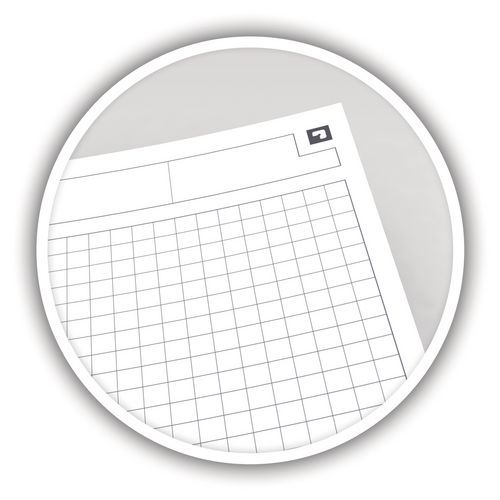 - Ark med huller til indsættelse i mappe.