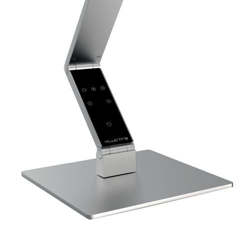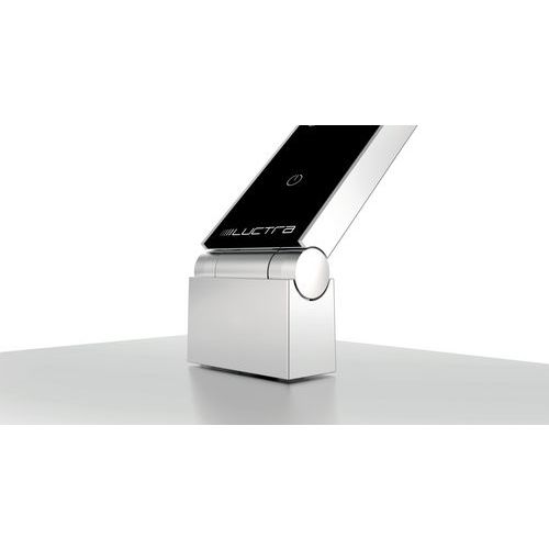LUCTRA TABLE er en bordlampe med fod, berøringsskærm i mørkt akrylglas, førsteklasses LED-teknologi og selvlåsende hængsler af høj kvalitet.