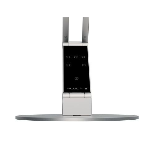 LUCTRA TABLE er en bordlampe med fod, berøringsskærm i mørkt akrylglas, førsteklasses LED-teknologi og selvlåsende hængsler af høj kvalitet.