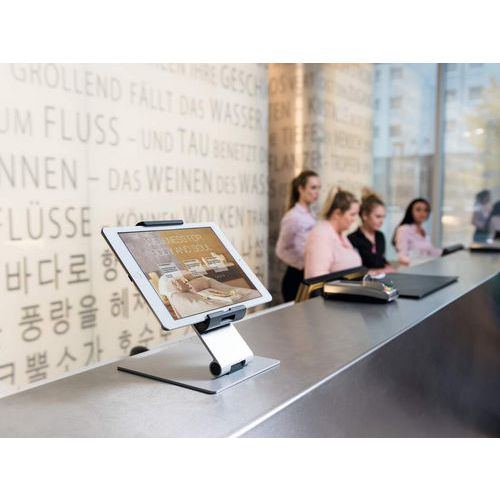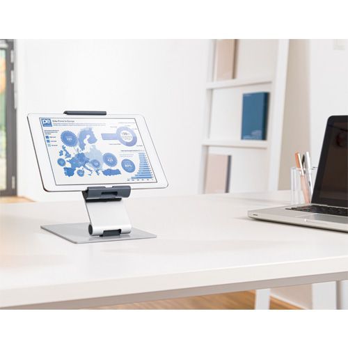 | Varenavn | Bordstativ til tablet, Model: TABLET HOLDER TABLE, Maksimal last: 1 kg, Materiale: Aluminium, Højde: 242 mm |