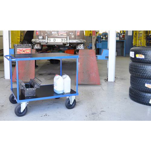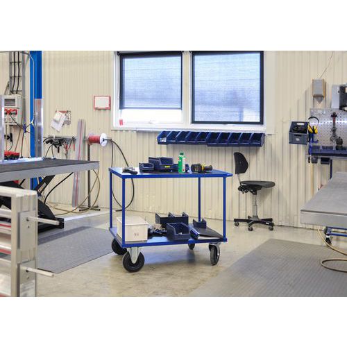 | Varenavn | Bordvogn Rulle, 2 hylder, 500 kg, Hjul, Ø: 200 mm, Kapacitet: 500 kg, Totalhøjde: 890 mm, Totalbredde: 700 mm |
