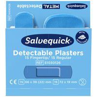 - Salvequick Plasterautomat Blue Detectable er tilpasset fødevareindustrien og indeholder blå, detekterbare plastre, som kan spores af de fleste metaldetektorer.