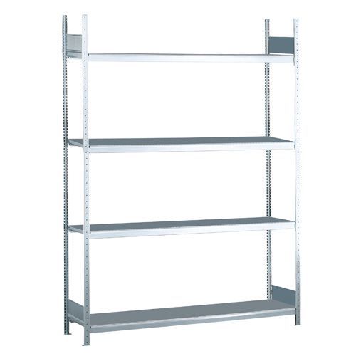 Bredfagsreol Easy-Fix: Grundsektion stålhylder, Maksimal vægt pr. hylde: 400 kg, Hylde, materiale: Stål