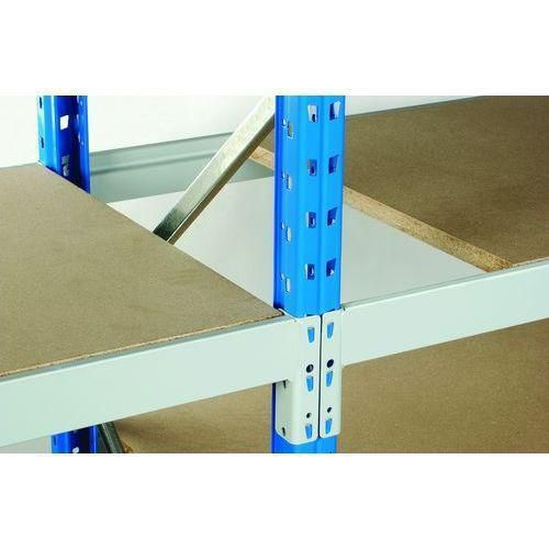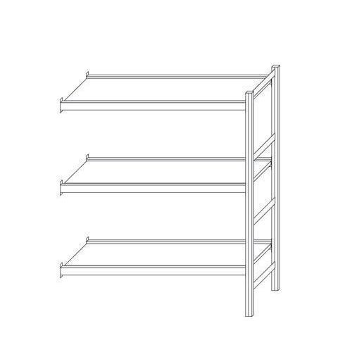 Påbygningssektion: består af 1 åben gavl, 6 eller 8 stivere og 3 eller 4 hylder. Stiverne er forsynet med huller (hver 5. cm), så delene let kan monteres. Tilbehør til Bredfagsreol Flexi-Store: Grundsektion.