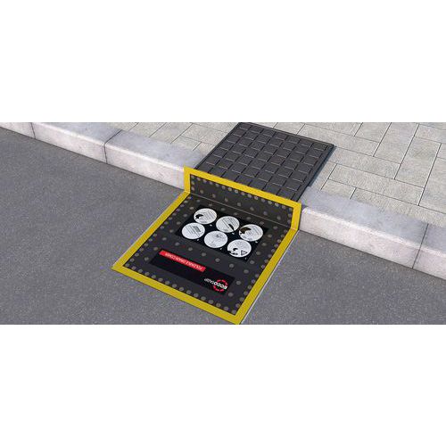 | Varenavn | Brøndmåtte foldbar FDC – Eccotarp, Længde: 750 mm, Bredde: 630 mm, Højde: 10 mm, Farve: Sort/gul |