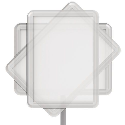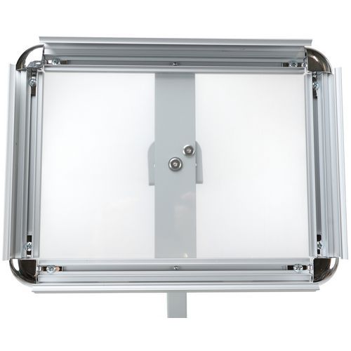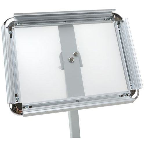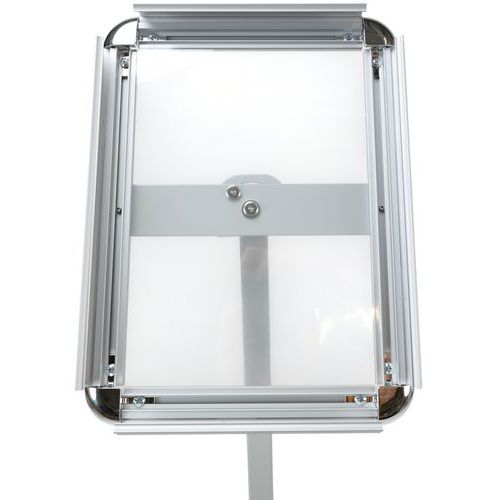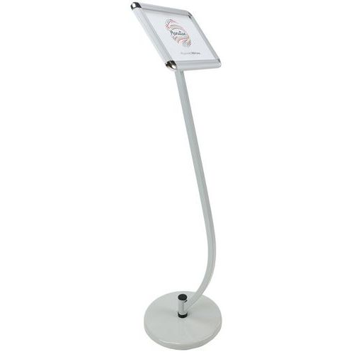 - Brochureholder med buet stander, der kan drejes for fleksibel præsentation.