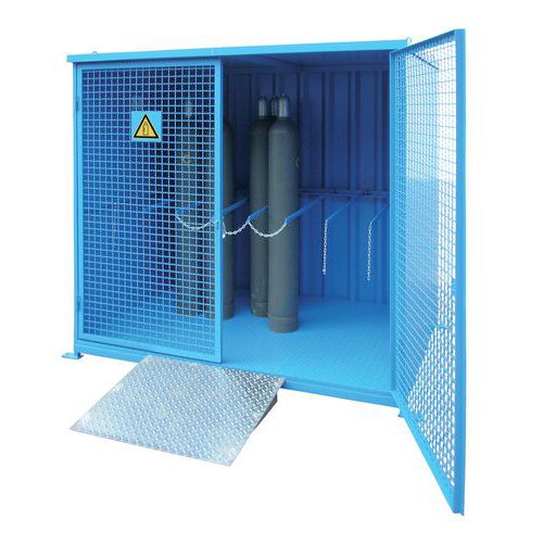 - Dette betyder, at skabe og beholdere til gasflasker er beregnet til udendørs brug og opfylder kravene i TRGS 510 for et udendørs depot.