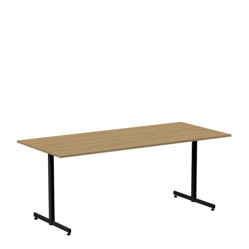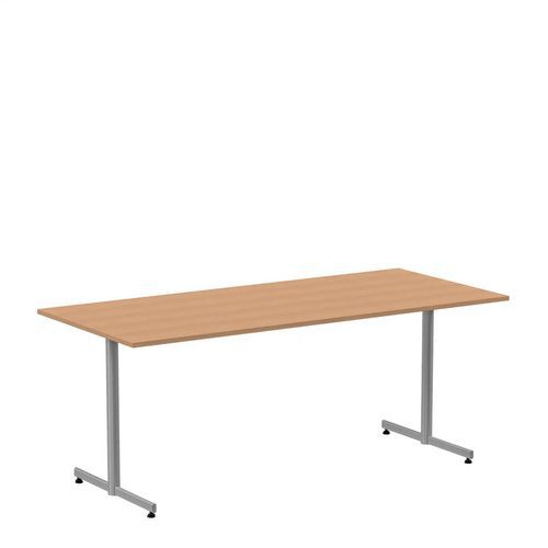- Stabilt cafébord med fast T-stativ og justerbare fødder, fungerer godt som frokostbord eller ekstra bord.