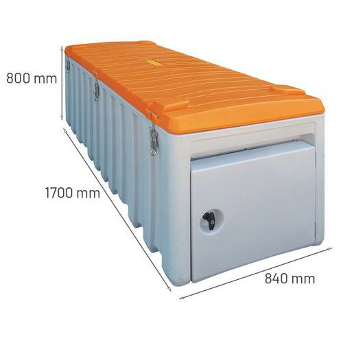 | Varenavn | CEMbox-transportkasse med luge, Volumen: 750 L, Totalhøjde: 800 mm, Totalbredde: 840 mm, Totallængde: 1700 mm |