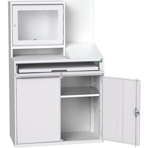 Med dokument-/skriveflade og magnetisk bagpanel til beskeder.