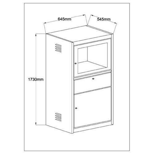 | Varenavn | Computerskab Bas, Maksimal last: 100 kg, Materiale: Stål, Totalhøjde: 1730 mm, Totalbredde: 645 mm |