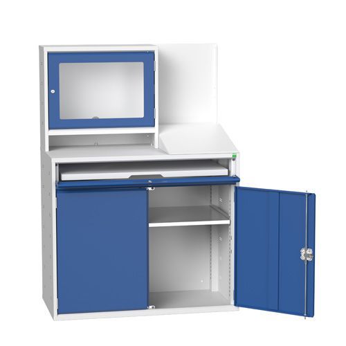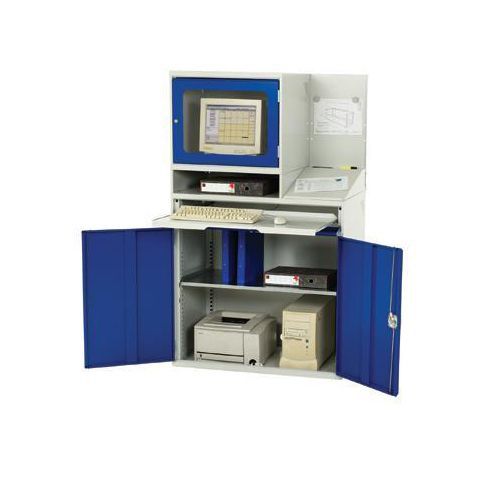 | Varenavn | Computerskab Workstation, Stel, farve: Lysegrå, Dør, farve: Blå, Bredde: 1050 mm, Dybde: 550 mm |